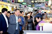 [경기경제신문] 김경일 파주시장은 지난 1일 추석 명절을 앞두고 금촌전통시장과 문산자유시장을 찾아 상인들과 시민들을 만나며 따뜻한 명절 분위기를 조성했다고 밝혔다. 김 시장은 지역화폐(파주페이)로 각종 물품을 구매하며 상인들을 격려했으며, 지역경제 활성화를 위한 민생회복 소비쿠폰 2차 지급에 시민 모두가 빠짐없이 신청해 줄 것과 9월 15일부터 무제한 할인쿠폰을 제공하고 있는 공공배달 앱 ‘배달특급’의 적극적인 이용을 부탁하며 지역경제 현장의 목소리를 청취했다. 김경일 파주시장은 “어려운 경기 여건 속에서도 항상 같은 자리에서 꿋꿋이 일하고 있는 소상공인들이야말로 지역경제의 버팀목”이라며 “소비 위축과 고물가·고금리로 어려움을 겪는 소상공인을 돕고 지역경제 활성화를 위해 최선을 다하겠다”라고 말했다. 파주시는 장기화된 경기 침체 속 민생경제 안정을 위해 올해 전국 최대 규모인 3,189억 원의 파주페이를 발행했다. 특히 올해 설(2월)과 가정의 달(5월)에 이어 추석이 있는 10월에도 파주페이 충전한도를 최대 100만 원으로 확대해 시민의 가계 부담 경감에 힘쓰고 있다.