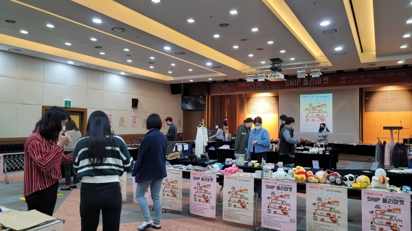 올해 처음 진행한 SNIP플리마켓은 지역사회에 대한 봉사라는 기획의도에 임직원들의 큰 호응을 받아 참여가 활성화되며 열기가 더해졌으며 지역사회의 어려운 이웃을 위해 진흥원 임직원과 입주기업들이 함께 협력해 기증/판매 물품을 모았다.