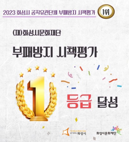 [경기경제신문] (재)화성시문화재단은 2023년 화성시 공직유관단체 부패방지 시책평가에서 1등급을 받았다.