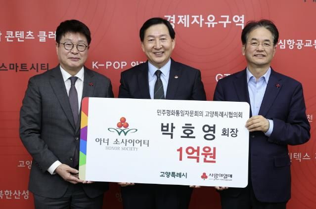 이날 박호영 회장은 성금 1억 원을 전달했으며, 성금은 경기사회복지공동모금회를 통해 고양시의 어려운 이웃과 사회복지기관, 사회복지시설로 전달될 예정이다.