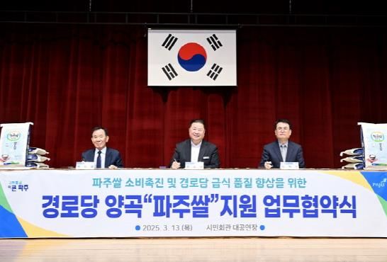 [경기경제신문] 파주시는 3월 13일 파주시민회관 대공연장에서 경로당의 급식 품질 향상과 파주쌀의 소비 촉진을 위한 ‘경로당 양곡 파주쌀 지원 업무협약(MOU)’을 체결했다.
