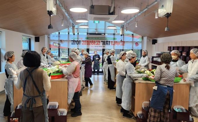 [경기경제신문] 경기도 먹거리광장은 지난 25~26일 이틀간 사계주방 연말 특별프로그램 ‘같이 김장하고 가치 나누고’를 통해 도민들과 함께 김장을 하고 완성한 김치를 인근 사회복지기관에 전달하며 나눔을 실천했다.
