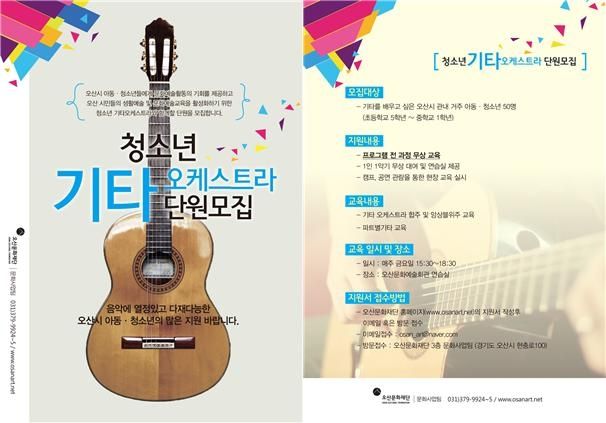【경기경제신문】(재)오산문화재단(이사장 곽상욱)이 2017년 청소년 기타오케스트라의 신규단원을 모집한다.