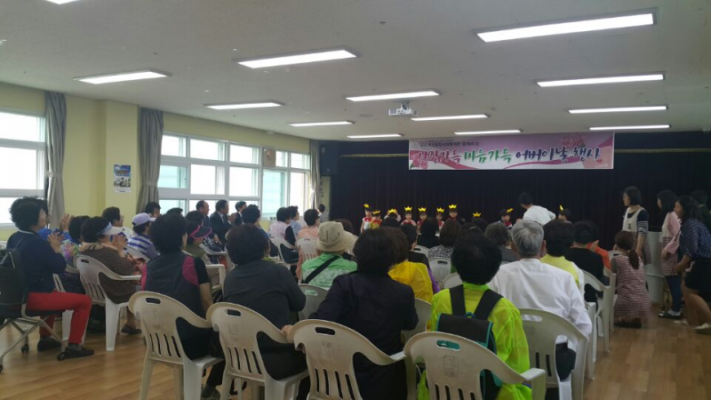 조병오 관장의 기념인사를 시작으로 나리통합어린이집 아동들의 축하공연이 이어졌으며 참여내빈과 아동들이 직접 어르신들에게 카네이션을 전달하는 시간을 가졌다.