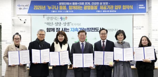 시는 5일 시청 중회의실에서 관내 한의원, 의원, 요양센터 등 41개 돌봄서비스 기관과 ‘누구나 돌봄, 함께하는 광명돌봄’ 서비스 업무협약을 체결했다.
