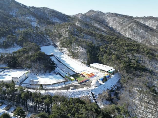 처인구 양지읍 평창리 해발 432m 독조봉 중턱에 자리한 용인시청소년수련원 썰매장은 2022년 조성된 사계절 체험형 시설이다.