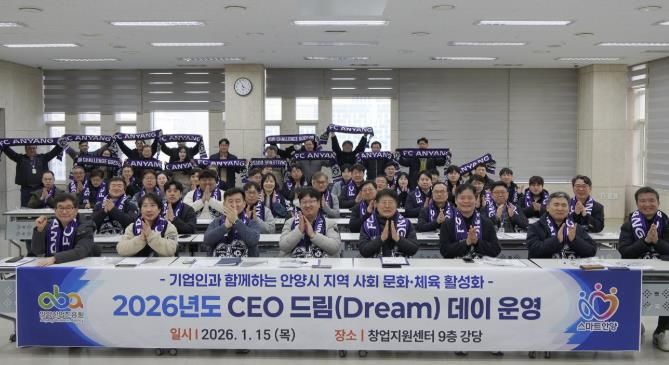 [경기경제신문] 안양산업진흥원은 15일 오후 3시30분 안양창업지원센터 강당에서 관내 기업인 150여 명을 대상으로 지역사회 문화·체육 활성화를 위한 ‘2026 CEO 드림(Dream) 데이’를 열었다.
