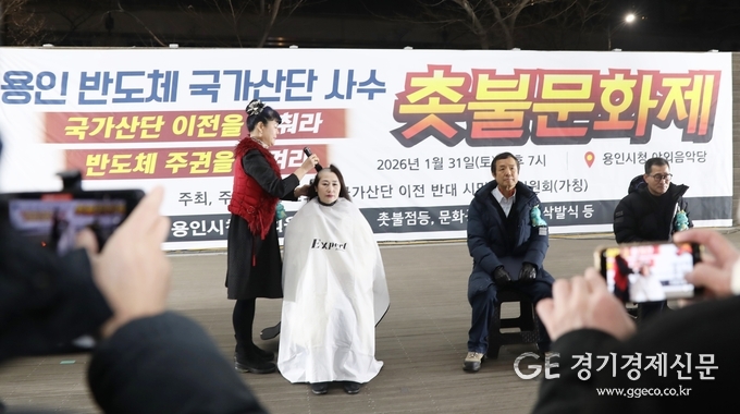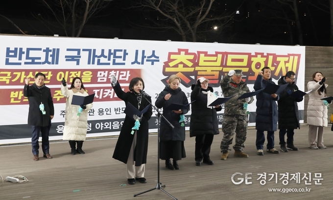 [경기경제신문] (가칭)'용인 반도체 국가산단 이전 반대 시민추진위원회'(위원장 송주현)는 31일 오후 7시부터 용인시청 야외음악당에서 '용인 반도체 국가산단 지방 이전은 있을 수 없다'며 "용인 반도체 국가산단 사수 촛불문화제"를 개최했다.