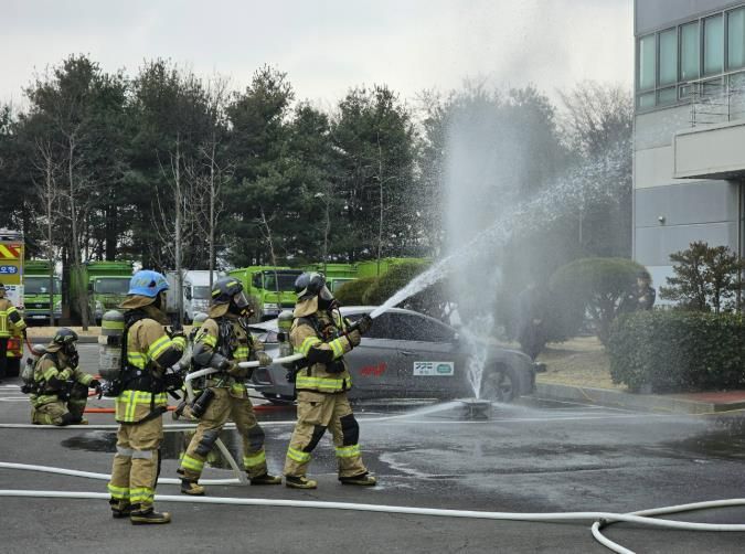 훈련은 실제 화재 상황을 가정해 화재 발생 시 상황 전파, 초기 진화 및 인명 대피, 소방차 진입과 합동 진압, 사후 수습 절차 점검 등 실전 중심으로 진행됐다. 특히 전기차와 리튬이온배터리 화재가 증가함에 따라, 배터리 화재의 특수성과 위험성을 고려한 맞춤형 대응 요령을 집중 점검했다.