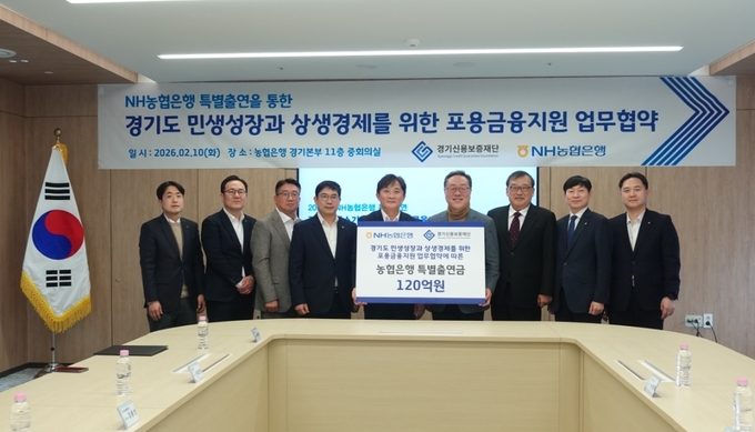 이날 농협은행 경기본부는 경기신용보증재단과‘2026년 경기도 민생성장과 상생경제를 위한 포용금융지원 업무협약’을 체결하고 도내 중소기업과 소상공인을 위해 1,800억원 규모의 대출을 지원할 예정이다.