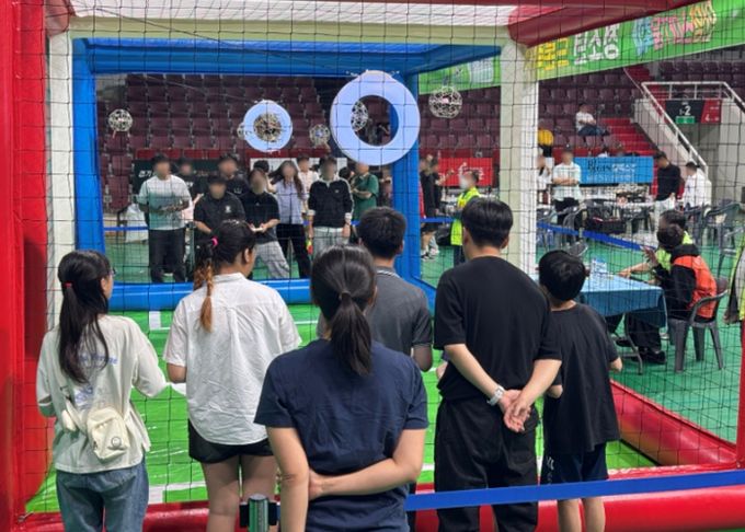 드론 축구는 탄소 소재 보호 장구로 감싼 드론을 공처럼 조종해, 공중에 설치된 상대 팀 골대에 넣어 득점하는 신개념 첨단 스포츠다. 역동적인 조종과 팀 전략이 결합돼 학생들이 놀이처럼 즐기며 자연스럽게 드론 기술을 습득할 수 있다.