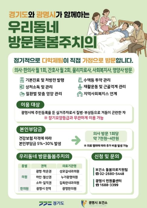 [경기경제신문] 장기요양등급이 없는 광명시민도 집에서 방문돌봄주치의 진료를 받을 수 있게 된다.