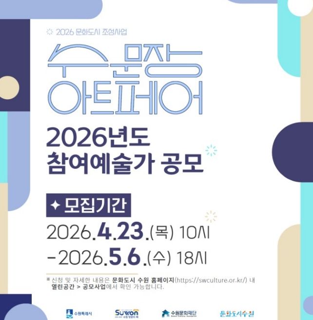 [경기경제신문] 수원문화재단은 지역 예술가의 작품 판로 확대와 지속가능한 창작 활동 기반 마련을 위해 2026년 ‘수문장 아트페어’ 참여 예술가를 모집한다.
