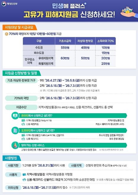 이번 지원금은 급등한 에너지 가격과 물가 상승으로 인해 실질 소득이 감소한 서민 경제를 보호하기 위한 조치로, 국민의 70%를 대상으로 소득 계층별·지역별로 차등 지급될 예정이다.
