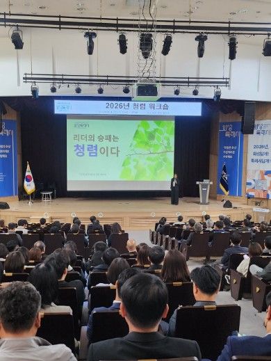 [경기경제신문] 화성특례시는 22일 시청 대강당에서 고위공직자를 대상으로 ‘2026년 청렴 워크숍’을 개최했다. 이번 워크숍은 조직을 이끄는 고위공직자의 청렴 리더십을 강화하고, 반부패 관련 법령에 대한 이해를 높여 공정하고 투명한 공직문화를 정착시키기 위해 마련됐다.