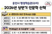 [경기경제신문] 용인특례시는 25일부터 수지구에 있는 용인시평생학습관에서 인문학 산책 수강생을 모집한다고 13일 밝혔다. 이번 강좌는 한국 소설, 현대미술, 발레 음악과 같이 다채로운 분야에서 용인 시민의 인문학적 사고의 폭을 넓히는 데 도움을 주고자 마련됐다. 교육 과정은 ▲3월 K-콘텐츠와 최근 한국 소설 ▲4월 현대미술은 왜 어려울까? ▲5월 음악을 통한 발레의 이해‘로 구성돼 있으며 매월 다른 주제로 진행된다. 대상은 19세 이상 용인 시민이라면 누구나 가능하며 지역 내 기업 재직자, 재외국민, 결혼이민자도 신청할 수 있다. 과정별 정원은 30명이며 수강료는 1만 원이다. 3월 과정은 25일부터 26일까지 용인시평생학습관 누리집에서 선착순 모집한다. 4월과 5월 과정은 각 과정 시작 전월에 접수하면 된다. 모바일 신청도 가능하다. 시 관계자는 “인문학은 일상에 깊이를 더하고 사고의 폭을 넓혀주는 중요한 분야”라며 “시민들의 적극적인 관심과 참여를 기대한다”고 했다.