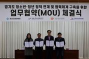 [경기경제신문] 경기도미래세대재단은 12일 옛 경기도청사 신관 4층 대회의실에서 수원·성남·시흥시청소년청년재단과 ‘경기도 청년 정책 연계 및 협력체계 구축 업무협약’을 체결했다. 협약의 핵심은 ▲청년 분야 공동사업 기획 ▲정책·사업 정보 공유 ▲참여 기반 강화다. 4개 재단은 청년 일경험, 진로·취업, 사회참여를 잇는 연계형 프로그램을 공동 발굴하고, 공동 조사·연구와 정책 제안으로 협력 범위를 넓힐 계획이다. 참여기구와 네트워크 교류도 확대한다. 프로젝트와 캠페인을 함께 추진하고, 전문 인력과 강사, 공간, 콘텐츠, 운영 노하우 등 인적·물적 자원을 상호 연계한다. 협약 이후에는 정례 협의체를 운영해 공동 과제를 발굴하고 협력 사업을 단계적으로 확대한다. 김현삼 경기도미래세대재단 대표이사는 “청소년기 경험이 청년기 지원으로 자연스럽게 이어지도록 재단 간 협력을 본격화하는 출발점”이라며 “공동 과제를 꾸준히 발굴하고 협업 체계를 촘촘히 다져 정책이 현장에서 성과로 이어지게 하겠다”라고 말했다.