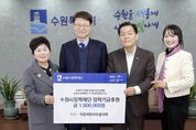 [경기경제신문] ㈜농협하나로유통 농협수원유통센터, ㈜더맛푸드, 수원지역건축사회, ㈜에듀케어, 팔색조봉사단, 이만세한식부봉사회 등 6개 기업·단체가 “지역 인재 양성에 사용해 달라”며 수원시장학재단에 총 4100만 원을 기탁했다. 기업·단체 대표들은 12일 수원시청을 방문해 수원시장학재단에 장학금을 전달했다. 전달식에는 이재준 수원시장, 수원시장학재단 박춘근 이사장, 노수용 사무국장 등이 참석했다. ㈜농협하나로유통 농협수원유통센터가 2000만 원, ㈜더맛푸드 1000만 원, 수원지역건축사회 500만 원, ㈜에듀케어 300만 원, 팔색조봉사단 200만 원, 이만세한식부봉사회가 100만 원을 각각 기부했다. ㈜농협하나로유통 농협수원유통센터는 2014년부터 올해까지 매년 2000만 원씩, 총 2억 4000만 원을 수원시장학재단에 기부했고, ㈜더맛푸드는 2년 연속 1000만 원을 기부했다. 민선홍 농협수원유통센터 지사장은 “지역사회와 함께 성장해 온 기업으로서, 지역의 미래를 이끌 인재 양성에 보탬이 되고 싶어 기부에 참여했다”며 “학생들이 꿈을 향해 한 걸음 더 나아가는 데 작은 힘이 되길 바란다”고 말했다. 수원지역건축사회는 2018년부터 이번까지 총 3800만