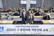 [경기경제신문] 이재준 수원특례시장은 “수원시 지역사회보장협의체 위원님들의 헌신적인 노력 덕분에 수원새빛돌봄이 안착할 수 있었다”고 말했다. 수원시가 12일 시청 중회의실에서 연 구·동 지역사회보장협의체 역량강화 교육에 함께한 이재준 시장은 “지역사회 최일선에서 위기 가구를 발굴하고, 보살펴 주신 협의체 위원 한 분 한 분께 감사드린다”며 “여러분 덕분에 돌봄이 원활하게 이뤄지고, 수원이 따뜻한 도시가 되고 있다”고 밝혔다. 이날 교육에는 44개 동 협의체 공공·민간위원장과 구 협의체 전문위원 등 100여 명이 참석했다. 이날 행사는 2025년도 동지역사회보장협의체 활성화 지원사업 운영계획 보고, 민관협력 강화를 위한 역량강화교육 등으로 진행됐다.