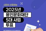 [경기경제신문] 용인문화재단은 1월 28일부터 2월 3일까지 시민참여를 통해 2025년 재단의 주요 사업을 선정하는 '시민이 선정하는 2025년 용인문화재단 5대 사업 온라인 투표를 진행한다. 이번 ‘용인문화재단 5대 사업’ 투표는 재단의 2025년 주요 성과사업 후보 13개 가운데시민이 직접 대표 사업을 선택하는 방식으로 운영된다. 참여자는 1인당 3개 사업까지 선택할 수 있으며, 득표 수가 높은 상위 5개 사업이 ‘용인문화재단 5대 사업’으로 선정된다. 주요 성과사업 후보는 ▲용인포은아트홀 리뉴얼 재개관 ▲용인포은아트홀 공연 경쟁력 강화 ▲생활권(처인구) 기획 공연 확산 ▲제2회 대한민국 대학연극제 ▲가을별빛콘서트 & 어텀라운지페스티벌 ▲조아용 시민 퍼레이드 ▲용인어린이상상의숲 ▲공생광장 문화예술 교육 ▲용인시민무용아카데미 ▲꿈의 극단 ‘용인’ ▲꿈의 오케스트라 ‘용인’ ▲용인문화예술공모 지원사업 ▲용인문화재단 장학사업 등 총 13개다. 투표는 온라인으로 진행되며, 용인문화재단 공식 홈페이지 또는 SNS 게시물 내 참여 링크를 통해 누구나 참여할 수 있다. 선정 결과는 재단 공식 SNS를 통해 발표될 예정이다. 재단은 투표 결과를 바탕으로 사업별