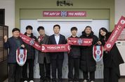 [경기경제신문] 이상일 용인특례시장은 11일 오후 시장실에서 용인FC 공식 서포터즈인 ‘용비어천가’와 용인FC의 K리그2 홈 개막전 준비 상황을 공유하며 소통의 시간을 가졌다고 밝혔다. 이날 이상일 시장은 ‘시민과 함께 성장하는 구단’이라는 비전에 따라 용비어천가 운영진 5명과 소통하며 현장의 목소리를 청취했다. 이 시장은 “구단주이지만 전문가가 아니기에 응원과 지원만 할 뿐 용인FC 선수단 구성에 간섭하지 않겠다고 했고, 단 한 명의 선수도 추천하지 않는 등 제가 한 말을 지켰다”라며 “언론에서 선수단 구성이 잘 됐다고 분석하며 ‘다크호스’로 평가하는 만큼 3월 1일 열릴 홈 개막전이 기대된다”라고 했다. 이 시장은 “시즌 개막을 앞두고 서포터즈 여러분과 직접 만나 준비 상황을 공유하고 현장의 이야기를 들을 수 있어 매우 뜻깊은 시간이었다”라며 “K리그2에서 용인FC가 돌풍을 일으킬 수 있도록 용비어천가의 뜨거운 응원과 지속적인 관심을 부탁한다”라고 했다. 이날 용비어천가는 삼가역-미르스타디움 특화 거리 조성과 홈 경기 조아용 팝업 스토어 설치 등을 요청했다. 이 시장은 “삼가역에서부터 미르스타디움까지 가는 길을 용인FC 엠블럼이나 선수 등번호 등 깃발로