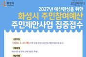 [경기경제신문] 화성특례시는 2일부터 4월 30일까지 ‘2027년 예산 편성을 위한 주민제안사업’신청을 받는다고 2일 밝혔다. 주민제안사업은 주민의 예산 편성 과정 참여를 보장하고 주민이 원하는 현안사업을 예산에 반영해 재정 민주주의를 실현하기 위한 주민 참여예산제 일환으로 추진된다. 주민제안사업 제안은 화성특례시 거주자, 기업 재직자, 학교 재학생(청소년시설 이용자 포함)이면 누구나 참여할 수 있으며, 다수의 주민에게 혜택을 줄 수 있는 사업이거나 생활 속 안전사고 예방과 관련 있는 사업 등을 제안하면 된다. 사업 제안 유형은 총 4개 분야로, ▲시청 및 구청 사업부서 소관 사업(사업당 최대 3억 원) ▲지역 밀착형 읍면동 단위 사업(사업당 최대 5천만 원) ▲청년참여예산(사업당 최대 5천만 원) ▲청소년참여예산(5백만 원~3천만 원)이다. 특히, 청년 및 청소년참여예산 분야는 다양한 세대의 참여를 독려하기 위해 올해 신설한 분야로, 수혜자 다수가 청년·청소년이거나 청년·청소년 문제 해결을 주목적으로 하는 사업을 제안하면 된다. 주민제안사업으로 최종 선정된 사업은 2027년도 본예산에 반영된다. 시청·구청·읍면동 소관 제안 사업은 사업 부서의 검토와 주민참