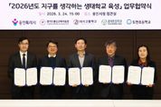 [경기경제신문] 용인특례시는 24일 시청 접견실에서 용인교육지원청을 비롯해 3개 학교와 ‘지구를 생각하는 생태학교 육성사업’을 위한 협약을 맺었다. 이날 협약식에는 조영민 교육장과 올해 생태학교로 선정된 대지고 유동철 교장, 효자초 정계환 교장, 도현초 연승희 교장, 담당 교사들이 참석했다. 이들 기관은 협약에 따라 ▲학교별 맞춤형 생태교육 운영 지원 ▲교과·교육과정과 연계한 생태교육 프로그램 개발·자문 ▲생태학교 육성사업 성과평가 등을 위해 협력하기로 했다. 올해 4년 차를 맞이한 ‘지구를 생각하는 생태학교’ 사업은 전국 지자체 중 최초로 환경교육 전문 인력을 학교 현장에 배치, 이론 교육을 넘어 실천 중심의 생태전환교육을 하는 용인시의 핵심 환경교육 사업이다. 시는 2023년부터 해마다 공모를 통해 지역 내 학교를 선정해 왔다. 올해 선정된 3개 학교를 포함해 총 12개교가 생태학교 사업에 참여하고 있다. 올해 기준 용인 지역은 초·중·고 343학급, 학생 9149명이 생태교육에 참여하면서 현장 중심의 체계적인 환경교육으로 높은 평가를 받고 있다. 시는 축적된 노하우를 바탕으로 학교와 지역사회가 함께하는 실천 중심의 환경교육 기반을 더욱 공고히 할 방침이