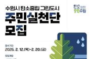 [경기경제신문] 수원특례시가 ‘생활 속 탄소중립 실천’을 확산하기 위해 2월 12일부터 20일까지 탄소중립 그린도시 사업 대상지 주민·생활권자를 대상으로 ‘수원시 탄소중립 그린도시 주민실천단’ 신규 참여자를 모집한다. 주민실천단은 탄소중립 그린도시 사업 대상지 주민과 생활권자로 구성된 시민 참여 조직이다. 지역 내 탄소중립 실천 활동과 홍보, 주민 참여 활동 등을 한다. 특히 수원시는 올해 주민실천단을 70명 규모로 확대 운영할 계획이다. 지난해 운영 성과를 바탕으로 신규 참여자를 모집해 참여 기반을 넓히고, 일회성 캠페인을 넘어 생활 속 실천이 자연스럽게 이어지는 탄소중립 문화를 확산할 계획이다. 모집 대상은 고색동·오목천동·탑동·서둔동·호매실동·평동·평리동 일부 등 탄소중립 그린도시 사업 대상지 거주민과 해당 지역 생활권자다. 주민실천단은 자원봉사 형태로 활동하며 ▲생활 속 탄소 저감 실천 ▲지역 맞춤형 실천 활동 ▲탄소중립 실천 홍보 ▲분과 활동, 회의 ▲역량 강화 교육 등에 참여한다. 수원시는 탄소중립 그린도시 주민실천단 확대 운영에 맞춰 참여자 역량을 높이는 교육과 분과별 실천 활동을 체계화해 주민 주도의 탄소중립 실천이 지속되도록 지원할 예정이다.