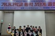 [경기경제신문] 화성특례시는 17일 화성시평생학습관에서 ‘2025년 학력인정 성인문해교실 가나다학교 졸업식’을 개최했다. 학력인정 성인문해교실 가나다학교는 사회적·경제적 이유로 학령기 배움의 기회를 놓친 만 18세 이상 비문해·저학력자를 대상으로 문해 교육을 진행하는 프로그램이다. 시는 지난 2020년 12월에 교육부 학력 인정 문해교육 프로그램 운영 기관으로 지정된 이후 학력 인정 성인문해교육을 운영하고 있으며, 올해는 지난 3월 4일부터 12월 11일까지 연 450시간의 교육과정으로 진행됐다. 시는 지난 2022년 초등 3단계 졸업생 15명, 2024년 초등 3단계 졸업생 11명을 배출한 데 이어, 올해는 처음으로 중학 3단계 졸업생 11명을 배출했다. 또한, 중학 1단계는 8명이, 초등 1단계는 9명이 수료했다. 졸업식에서는 학습자 및 가족, 강사들이 참석한 가운데, 중학과정을 마친 졸업생들에 대한 졸업장과 상장 수여, 모범 졸업생 경기도교육감 표창장 수여 등이 진행돼 학습자들의 성과를 함께 축하하고 졸업의 기쁨을 나누는 시간을 가졌다. 학습자 대표는 “가나다학교가 없었다면 학교도 공부도 생각하지 못했을 텐데 늦었지만 학교에 다니기를 정말 잘한 일이라고