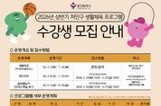 [경기경제신문] 용인특례시 처인구는 지역 주민의 건강 증진과 여가 활성화를 위해 3월 3일부터 ‘2026년 처인구 생활체육 프로그램’을 운영한다. 어린이부터 성인까지 누구나 즐길 수 있는 생활체육 프로그램은 처인구 지역 9개 장소에서 6개 종목, 14개 강좌가 진행된다. 성인을 위한 생활체조(에어로빅, 줌바댄스)와 배드민턴 강좌는 3월부터 운영한다. 생활체조는 사전 신청 없이 현장에서 참여할 수 있고, 배드민턴은 사전 접수한 수강생을 대상으로 진행한다. 어린이를 위한 유소년 프로그램은 ▲음악줄넘기 ▲인라인스케이트 ▲풋살 ▲농구 등 4개 종목이며, 4월부터 상반기 수업을 시작한다. 모든 강좌는 무료로 운영되며 유소년 프로그램은 3월 16일부터 처인구 누리집에서 선착순 모집한다. 구 관계자는 “많은 시민이 체육활동을 통해 건강 증진과 일상 속 활기를 느낄 수 있도록 다양하고 알찬 프로그램을 마련해 운영하겠다”고 말했다.