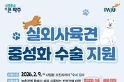 [경기경제신문] 파주시는 실외에서 사육되는 반려견의 무분별한 번식을 예방하고 유실·유기 동물 발생을 줄이기 위해 녪년 실외사육견 중성화수술 지원사업’을 2월 9일부터 추진하고 있다. 해당 사업은 농촌지역 등에서 마당이나 울타리 안에서 기르는 5개월령 이상의 반려견을 대상으로 중성화 수술비를 지원하는 사업이다. 이를 통해 무분별한 번식으로 인한 유기견 발생을 사전에 차단하고, 개체 수를 효율적으로 관리하는 것을 목표로 한다. 지원 대상은 파주시 농촌지역 등 실외에서 반려 목적으로 개를 사육하는 시민이며, 신청하려면 거주지 관할 행정복지센터 또는 파주시농업기술센터 3층 동물관리과를 방문하면 된다. 대상자로 선정되면 지정 동물 병원과 사전 협의를 거쳐 중성화 수술을 진행하게 된다. 올해 사업 규모는 총 180마리로, 1마리당 최대 40만 원(암컷 기준)까지 지원하며 가구당 10마리 이내로 제한된다. 특히 기초생활수급자, 차상위계층, 65세 이상 고령자는 우선 지원 대상이다. 이광재 동물관리과장은 “실외사육견 중성화수술 지원사업은 유기견 증가를 예방하고 시민 불편을 줄이는 데 크게 기여할 것”이라며 “동물 복지를 향상시키고 사람과 동물이 조화롭게 공존하는 성숙한 반