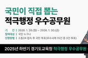 [경기경제신문] 경기도교육청이 공공의 이익을 높인 적극행정 우수공무원 선정을 위해 2025년도 하반기 대국민 심사를 실시한다. 도교육청은 창의적이고 능동적인 행정을 펼친 각 기관의 추천 사례를 접수해 1차 예선심사에서 우수사례 15건을 선정했다. 이를 대상으로 1월 26일부터 30일까지 ‘소통24’누리집에서 국민이 참여하는 온라인 투표 방식의 대국민 심사를 진행한다. 참여자는 1인당 3건의 우수사례에 투표할 수 있다. 본선 진출자는 예선심사 점수 60%와 국민투표 결과 40%를 합산해 최종 결정된다. 선발된 공무원에게는 교육감 표창과 포상금, 특별승급의 인사상 가점부여 등 다양한 특전을 제공할 계획이다. 이번 선발은 단순한 성과 평가를 넘어 적극행정의 모범사례를 널리 알리고, 공직사회 전반에 적극행정 문화를 확산시키는 의미가 있다. 특히 국민이 직접 우수공무원을 선정함으로써 정책 수요자의 관점이 반영된다는 점에서 공정하고 투명한 심사 절차가 마련될 것으로 기대된다. 도교육청은 앞으로도 국민이 체감하는 변화를 만들어낸 공무원의 노력을 널리 알리고, 적극행정을 일상적 공직문화로 조성하기 위해 지속적으로 노력할 방침이다.