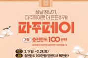 [경기경제신문] 파주시는 다가오는 설 명절을 맞아 추가 충전금 혜택을 받을 수 있는 충전 한도를 기존 70만 원에서 100만 원으로 상향한다. 2월 한 달간 100만 원을 충전할 경우, 연중 상시 지급되는 10% 인센티브가 적용돼 추가 충전금 10만 원이 더해진 총 110만 원을 사용할 수 있다. 이를 통해 명절을 앞두고 소비 지출이 늘어나는 시민의 경제적 부담을 덜고, 지속적인 경기 침체로 어려움을 겪고 있는 관내 소상공인의 매출이 증대될 것으로 기대된다. 파주시 관계자는 “이번 파주페이 확대 발행이 설 명절 장바구니 물가 부담을 완화하고, 지역 골목상권에 활력을 불어넣는 마중물이 되길 바란다”라며, “시민 여러분의 많은 관심과 이용을 부탁드린다”라고 전했다. 한편, 파주페이는 ‘경기지역화폐’앱 및 관내 농협을 통해 충전이 가능하며, 현재 음식점, 학원, 전통시장 등 1만 6천여 개의 가맹점에서 사용할 수 있다. 파주시는 시민 편의 증진과 지역경제 활성화를 위해 지난해 가맹점 연매출 제한 기준을 12억 원에서 30억 원으로 대폭 완화해 사용처를 확대한 바 있으며, 어려운 재정 여건 속에서도 상시 10% 인센티브 지급을 유지하는 등 적극적인 활성화 정책을 펼