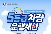 [경기경제신문] 파주시는 제7차 계절관리제 기간인 2025년 12월부터 2026년 3월까지 배출가스 5등급 차량에 대한 단속을 실시하고 있다. 제7차 계절관리제 운행 제한은 고농도 미세먼지가 자주 발생하는 시기인 12월부터 3월까지(주말 및 공휴일 제외) 수도권과 6대 특별·광역시(부산, 대구, 광주, 울산, 세종)를 출입하는 전국 배출가스 5등급 차량을 대상으로 시행된다. 운행 제한을 위반할 경우 1일 10만 원의 과태료가 부과된다. 다만, 저감장치 부착이 불가능한 차량 중 기초생활수급자 및 차상위계층 소유 차량, 소상공인 등록 차량, 긴급자동차, 장애인 차량, 국가유공자 차량 등은 과태료 부과 대상에서 제외된다. 다만, 저감장치 장착 불가 차량 중 기초생활수급자, 차상위계층 및 소상공인 등록차량, 긴급자동차, 장애인, 국가유공자 차량 등은 부과 대상에서 제외된다. 파주시는 장곡 검문소에 설치된 단속카메라를 통해 운행 제한 위반 차량을 단속하고 있으며, 적발된 차량에 대해서는 관련 절차에 따라 과태료를 부과할 예정이다. 또한, 시는 5등급 차량의 저공해 조치를 위한 노후 경유차 조기폐차, 저감장치 부착 지원 사업을 2월 말부터 시행해 폐차 또는 저감장치 부