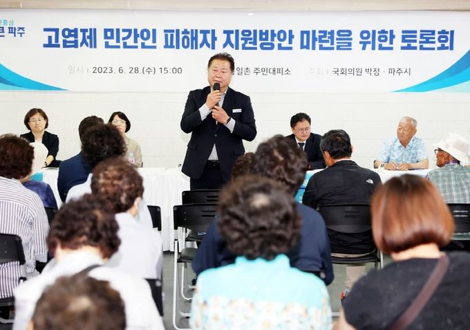 [경기경제신문] 파주시와 박정 국회의원이 지난 28일, 장단면 통일촌 주민대피소에서 ‘고엽제 민간인 피해자 지원방안 마련을 위한 토론회’를 공동 개최했다. 경기일보와 강원도민일보에서 주관한 토론회에는, 고엽제 민간인 피해자인 대성동·철원군 생창리 주민 등이 참석했다.