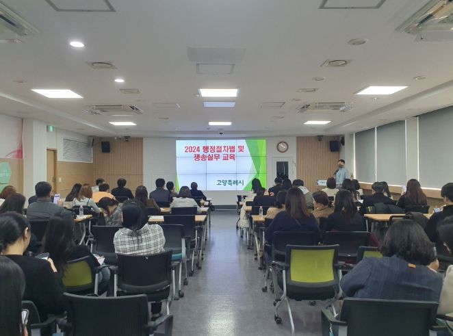 [경기경제신문] 고양특례시는 지난 15일 시청 대회의실에서 신규 임용공무원 및 행정처분을 담당하는 공무원 60여명을 대상으로 행정절차법 및 쟁송실무 교육을 실시했다고 밝혔다.