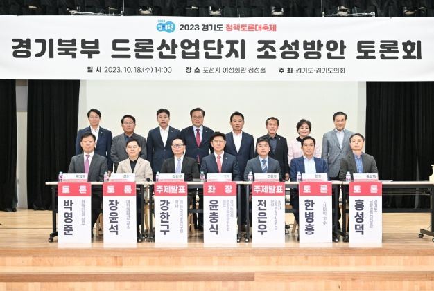[경기경제신문] 경기도의회 문화체육관광위원회 윤충식 의원(국민의힘, 포천1)이 좌장을 맡은 ‘경기북부 드론산업단지 조성방안 토론회’가 지난 18일 포천여성회관 청성홀에서 개최됐다. 이번 토론회는 경기도와 경기도의회가 공동을 주최하는 ‘2023 경기도-경기도의회 정책토론 대축제’의 일환으로 열렸다.