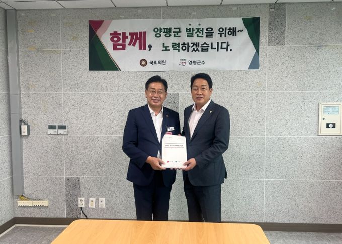 [경기경제신문] 전진선 양평군수가 12일 국회의원회관에서 김선교 국회의원과 만남을 갖고 공약사업 추진과 지역 현안사항 해결을 위해 힘을 모았다.