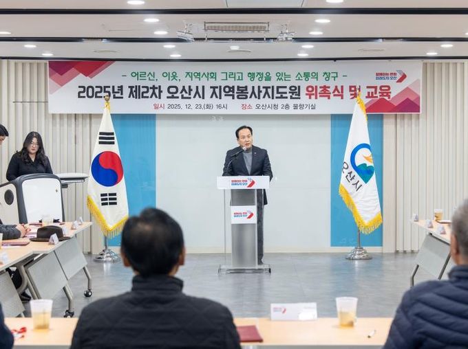 [경기경제신문] 오산시는 지난 23일 오산시청 물향기실에서 신규 경로당 회장을 대상으로 한 '2025년 지역봉사지도원 위촉식'을 개최했다고 밝혔다.