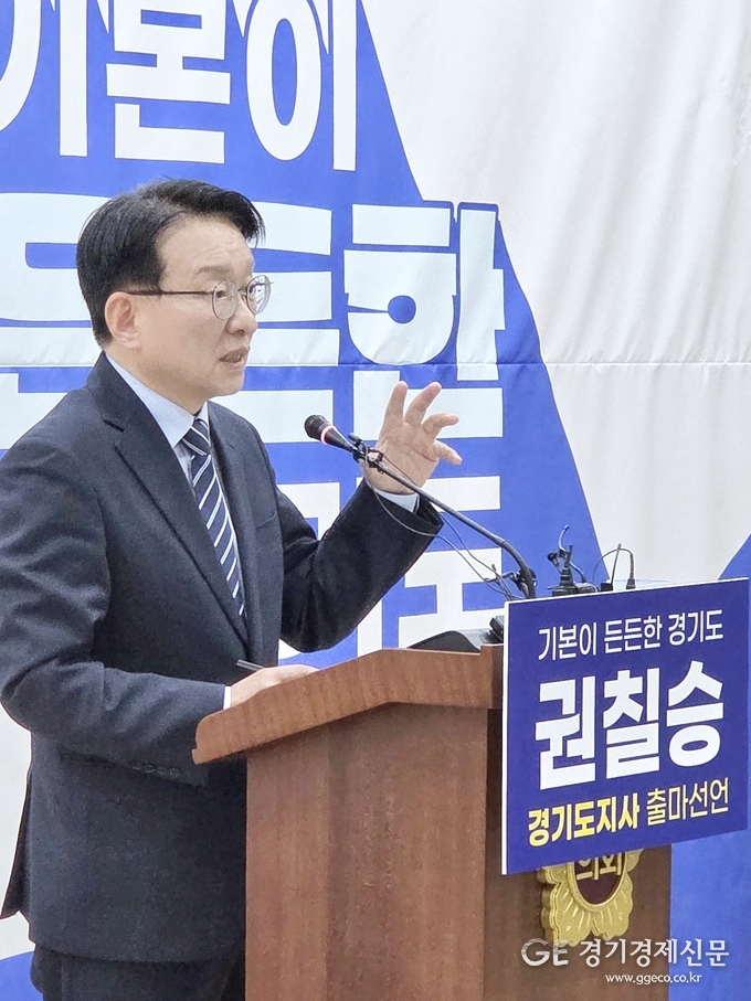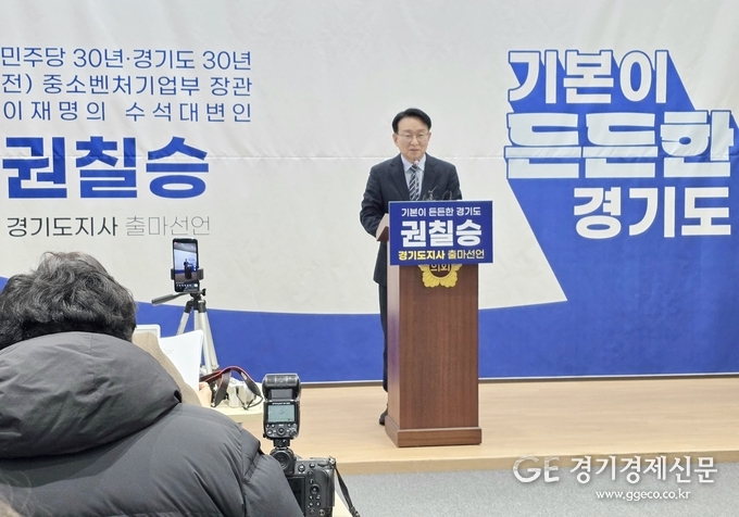 [경기경제신문] 더불어민주당 권칠승 의원 (경기 화성병) 이 3일 오후 , 경기도의회 브리핑룸에서 기자회견을 열고, “기본이 든든한 경기도, 덜 피곤한 경기인” 을 슬로건으로 내걸며 차기 경기도지사 선거 출마를 공식 선언했다.