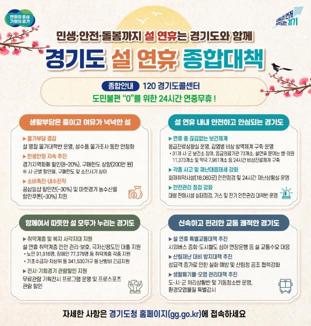 [경기경제신문] 경기도가 도민들이 따뜻하고 편안한 명절을 보낼 수 있도록 ‘설 연휴 종합대책’을 추진한다.