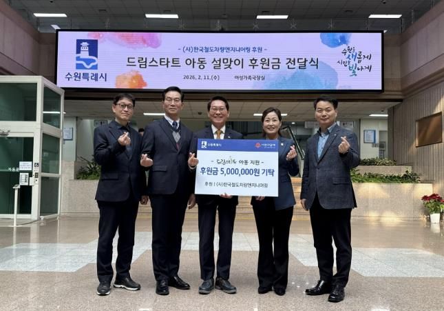 [경기경제신문] (사)한국철도차량엔지니어링이 설을 맞아 “수원시 드림스타트 아동을 위해 사용해 달라”며 후원금 500만 원을 기부했다.