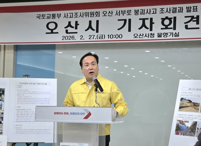 오산시(시장 이권재)는 27일 오전 10시 시청 2층 물향기실에서 "서부로 붕괴사고" 조사 결과와 관련한 입장 발표를 위해 기자회견을 열었다.