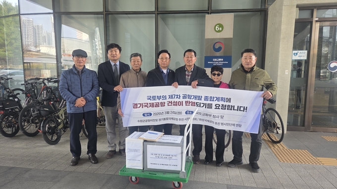 [경기경제신문] 수원군공항이전 및 경기통합국제공항 추진 시민협의회(회장 조철상)와 화성국제공항 추진 범시민단체 연합은 24일 국토교통부를 방문해 「제7차 공항개발 종합계획」에 경기국제공항 건설을 포함할 것을 요구했다.
