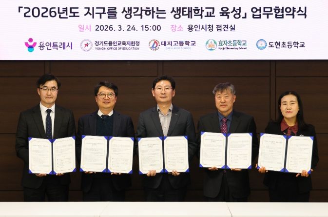 [경기경제신문] 용인특례시는 24일 시청 접견실에서 용인교육지원청을 비롯해 3개 학교와 ‘지구를 생각하는 생태학교 육성사업’을 위한 협약을 맺었다.