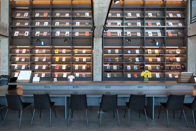 1층에는 소파 좌석이, 2층에는 바 테이블과 라운지 체어가 마련돼 각자의 방식으로 머물 수 있다. 모든 좌석에는 콘센트가 마련돼 있어 노트북으로 작업하거나 조용히 과제를 하기에도 안성맞춤이다. 메인 공간에는 높은 층고와 함께 ‘행복’을 주제로 큐레이션된 서가가 인상적이다. 관계, 자립, 감사 등 행복해지기 위해 고민해야할 키워드별로 구성된 책들은 자연스럽게 사유를 이끈다. 어떤 책을 읽어야할지 고민된다면 AI 키오스크를 통해 개인에게 맞는 ‘인생 책’도 추천받을 수 있다.