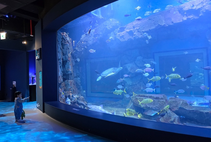 해양생태과학관 전시 관람은 시간대별로(2시간 간격) 예약 및 입장 할 수 있다. 주말에는 시흥시 통합예약플랫폼 ‘시소’를 통해 사전 예약 후 방문하는 것이 좋다. 전시관에 들어서면 바다를 주제로 한 모형과 영상 자료, 체험형 전시가 어우러져 해양 생태계의 구조와 바다 생물의 역할을 자연스럽게 이해할 수 있도록 구성돼 있다. 하루 4회 운영되는 도슨트 투어와 ‘아쿠아리스트’라는 직업을 소개하고, 물총고기와 가오리의 생태 및 서식지를 배우는 교육 프로그램도 진행된다. 하루 2회(12:50 / 15:30) 진행되는 파노라마 피딩타임에는 아쿠아리스트가 수조에 직접 들어가 거북이와 물고기에게 먹이를 주는 모습을 가까이에서 관찰할 수 있어 높은 몰입감을 준다.