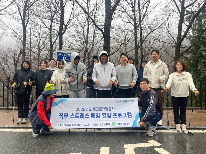 [경기경제신문] 새만금개발공사(사장 나경균)는 지난 9일부터 이틀간 전남 장성군에 위치한 장성숲체원에서 임직원의 직무 스트레스를 완화하고 마음 건강을 돌보기 위한 근로자 마음건강 힐링 프로그램을 운영했다.