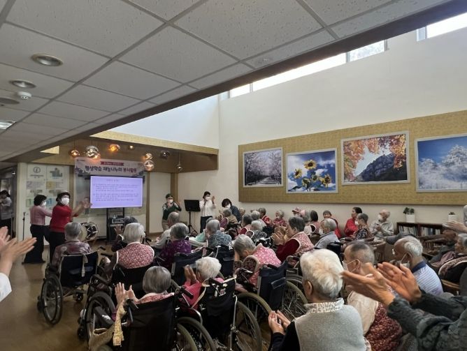 [경기경제신문] 용인특례시는 평생학습관 재능나누미 교육 수강생들이 16일 처인구 역북동에 있는 대한간호노인요양원을 찾아 노인들을 대상으로 인지기능 향상을 위한 프로그램을 진행했다고 17일 밝혔다.
