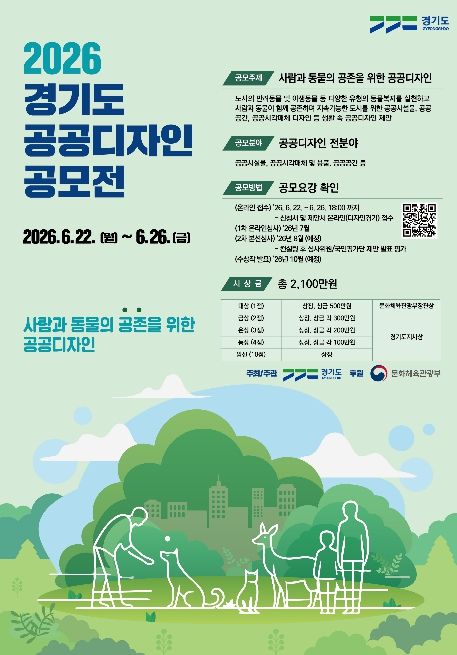 [경기경제신문] 경기도가 ‘사람과 동물의 공존을 위한 공공디자인’이란 주제로 제20회 ‘2026년 경기도 공공디자인 공모전’을 6월 22일부터 26일까지 개최한다.